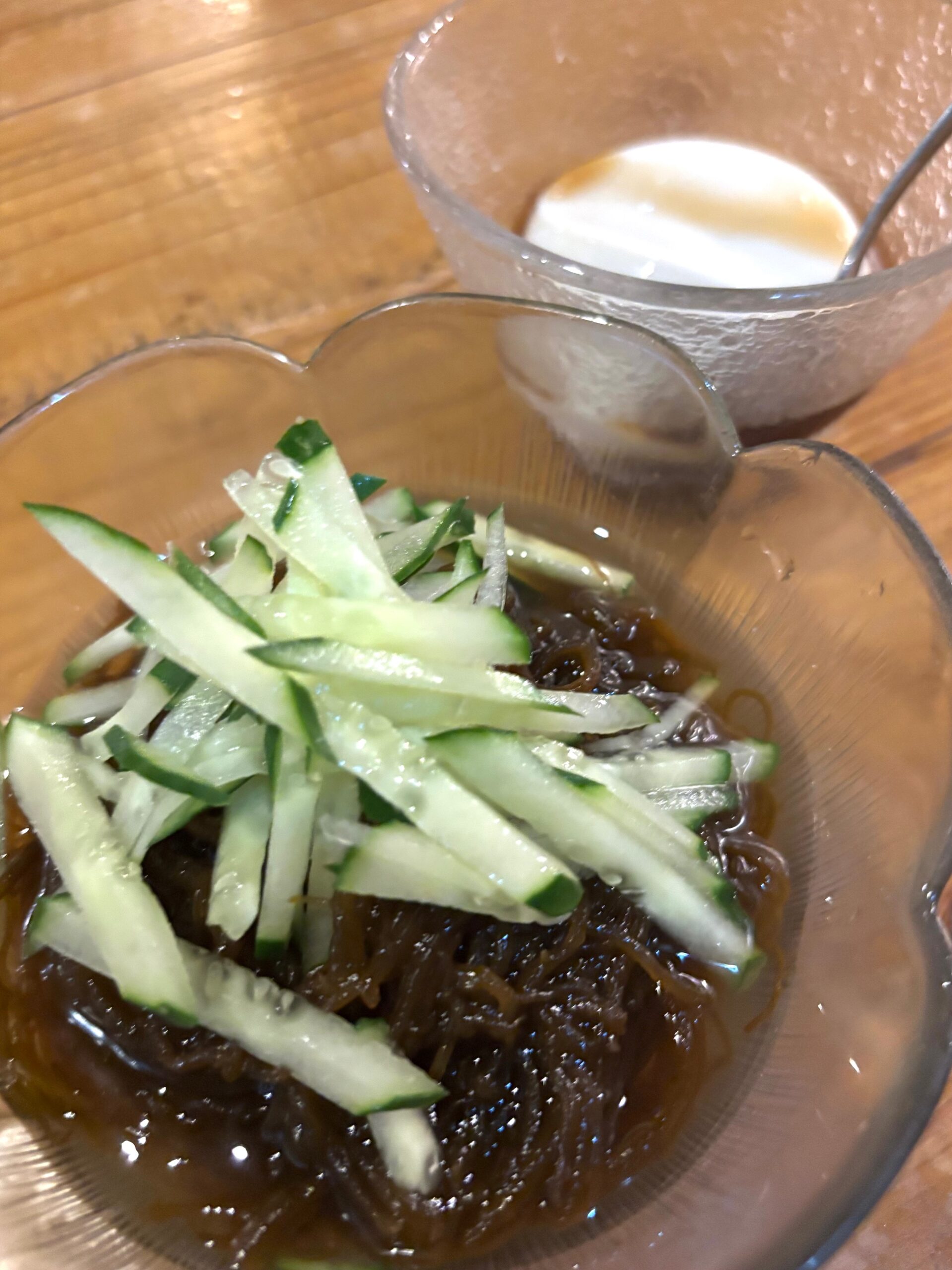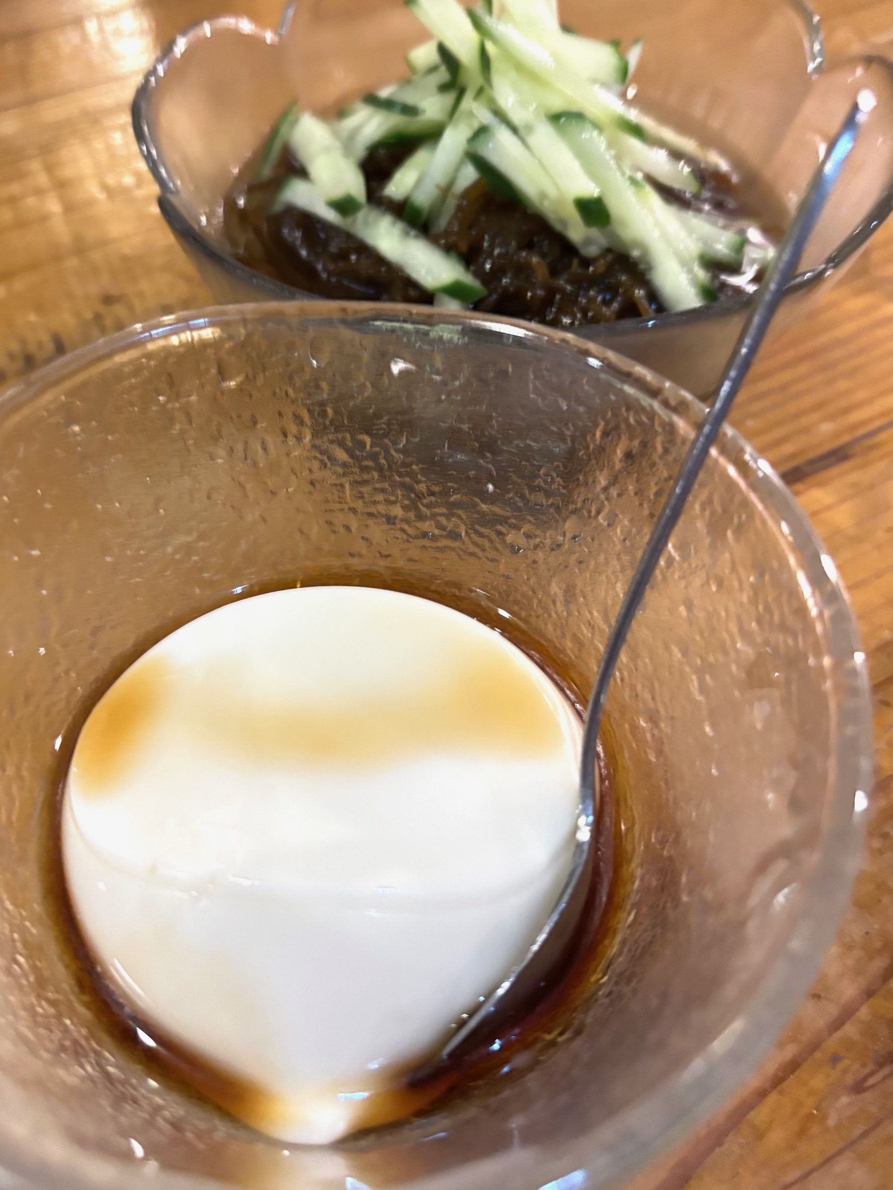 シークァーサー入りでシャキシャキの「もずく酢」(530円)、もっちりした程よい甘さの「ジーマミ豆腐」(420円)、どちらもさっぱりとしていて美味。