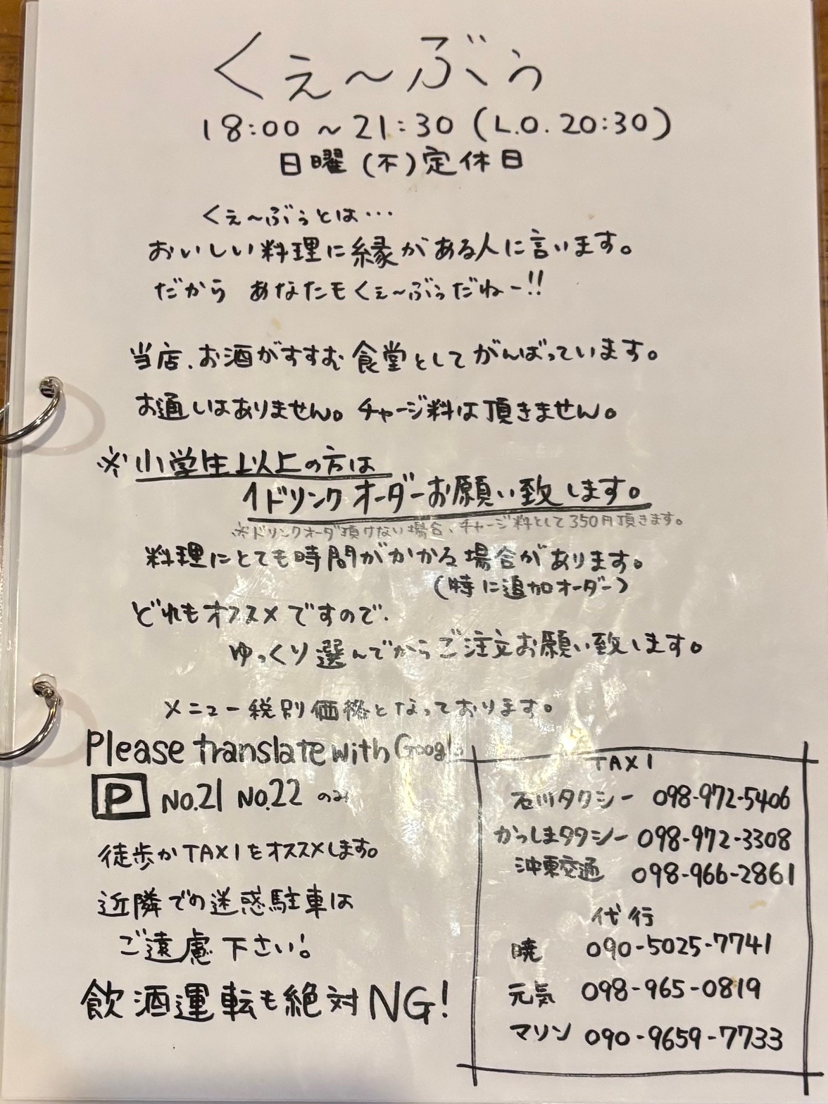 そんな恩納村でオススメしたい「くぇーぶぅ」さんは、「ザ・ムーンビーチ ミュージアムリゾート」から歩いてすぐ、58号を曲がった先にある繁盛店です。